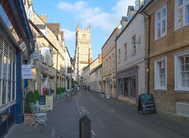 This is a place with ancient origins. The Roman fort, later town, of 'Corinium Dobunnorum' was an important region (there's still an atmospheric grassed over amphitheatre), mentioned by Ptolemy (as 'Korinion') in his Geography, written about AD150. All this makes the award-winning Corinium Museum very much more than the average town museum. The Church of St John Baptist dominates the town's market place, in 'woolgothic' style (a reference to the importance of income from the wool trade in medieval times). The porch is a landmark building built by the abbey in 1490 and designed to serve as a public meeting place as well as the main entrance to the church. It's unusually grand and it could be called Britain's first office block - with business conducted at street level, local guilds occupying the first two levels and later service as the Town Hall. Today the population is around 20,000 and the town is an important tourism and craft centre. It has an arts centre with workshops in a converted brewery, and there are regular craft and antique fairs and auctions. There are open spaces too: the Abbey Grounds and the extensive 18th century parkland landscape of Cirencester Park, in the Bathurst family's ownership for over three centuries.