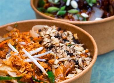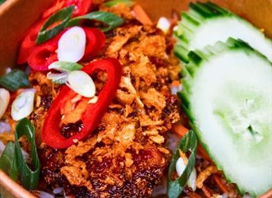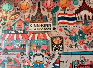 You'll find Kinn Kinn on The Deck at Gloucester Food Dock, in between neighbours Scandinavian Coffee Pod and Hop Kettle's Kitchen. With a warm and welcoming interior, there is also a collection of outdoor seating so you can dine alfresco with a Pad Thai and a Bangkok Blossom Cocktail in hand.