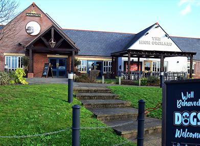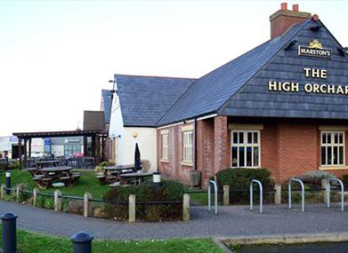 Welcome to The High Orchard in Gloucester, a modern red brick family-friendly pub with a 7 day carvery and  make sure you check out our fantastic desserts in our cake display cabinet! A great location a stone’s throw from Gloucester Quays and the town centre makes us popular with families and people looking for somewhere for a working lunch. You’ll be blown away by our range of real ales, craft beers, wines, and soft drinks. And bowled over by our meal deals. It’s two for one all day every day on mains, specials, steaks, burgers, and salads. Need an idea for date night? We have a curry night and a steak night every week. Out for drinks with the girls? We’ll pop a couple of bottles of prosecco in the fridge for you. Book a table or be spontaneous and turn up whenever you fancy great pub grub.