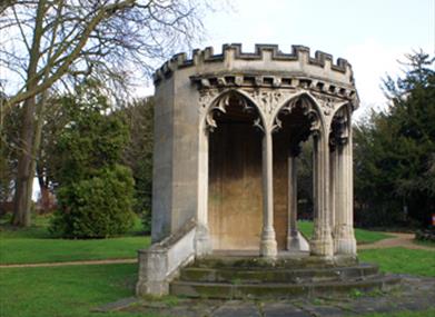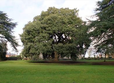 Hillfield Gardens was originally developed as the grounds of the elaborate Victorian Hillfield House built around 1867-9, replacing an earlier house from 1826 (known as Woodbine Hill). The garden contains three mature Redwood trees, a champion oak and some of the oldest trees in Gloucester. The park was opened to the public around 1933 and is home to three monuments of historical significance: Scriven's Conduit, the King's Board and the chancel of the 12th century leper chapel of St May Magdalene. The remnants of a Roman road have been unearthed during a recent archaeological dig.