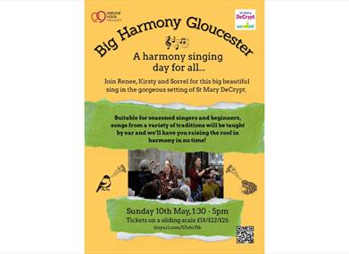 Come and sing in the beautiful surroundings of St Mary de Crypt in central Gloucester on Sunday 10th May 2025 from 1.30pm – 5pm. You'll be led by welcoming and experienced song leaders Sorrel Wilde, Kirsty Abraham and Renee Berkhout.