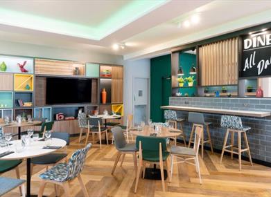 You can enjoy a tasty breakfast or all-day dining and catch up with friends over a drink in our open lobby. Kids stay and eat free!