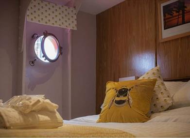 Luxury guest suite on the UK’s only historically registered, stay aboard Lightship. Based in Gloucester Docks within walking distance of Gloucester Quays, museums, Gloucester Cathedral, restaurants, and bars.